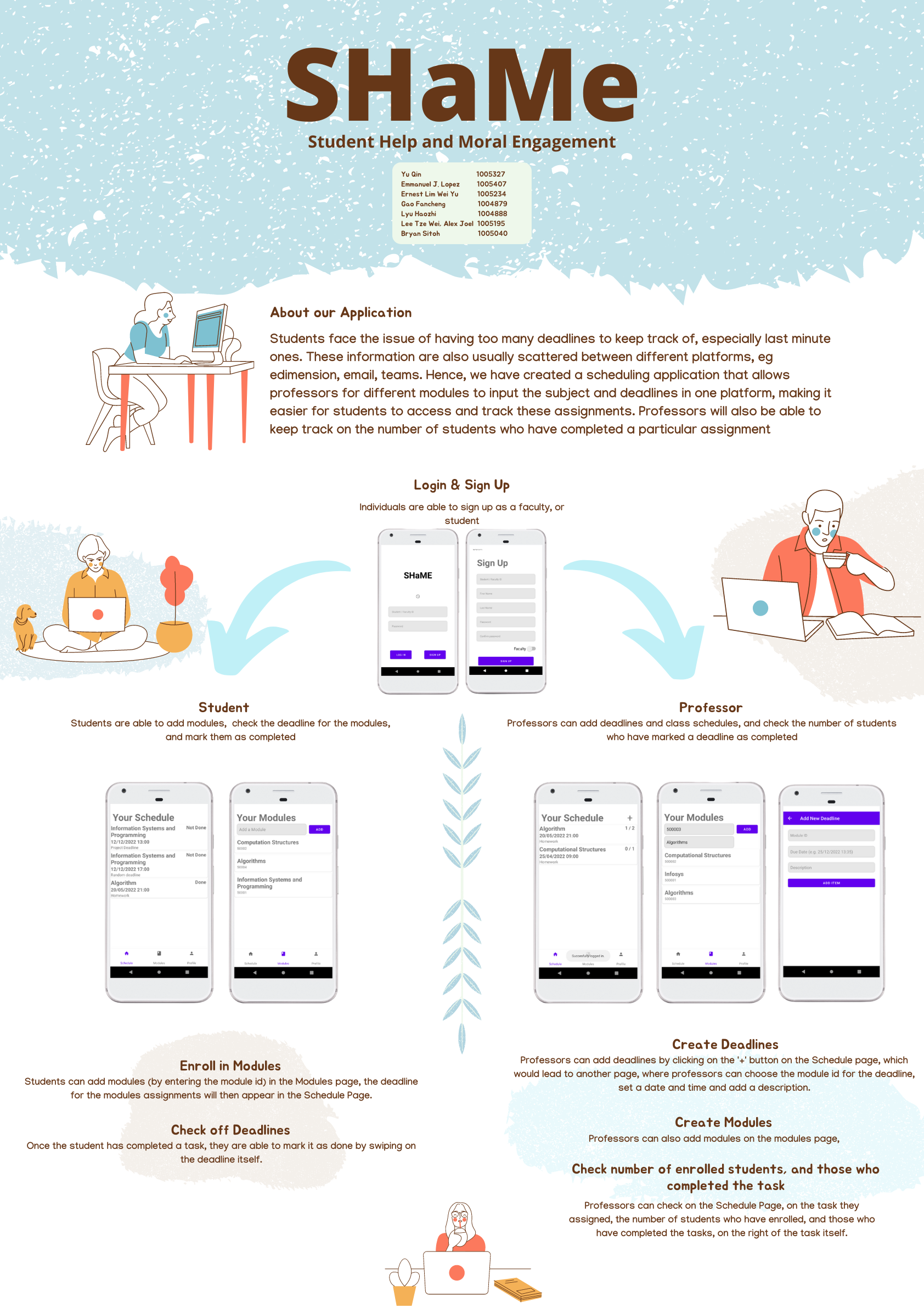 We chose to build a scheduling app to help tackle the problem of coordinating deadlines between different modules. The app allowed: